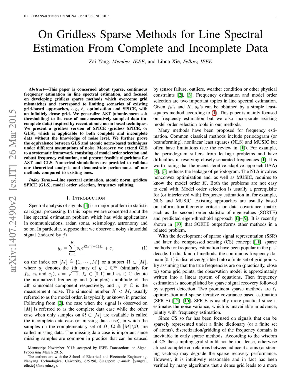 On Gridless Sparse Methods for Line Spectral Estimation From Complete