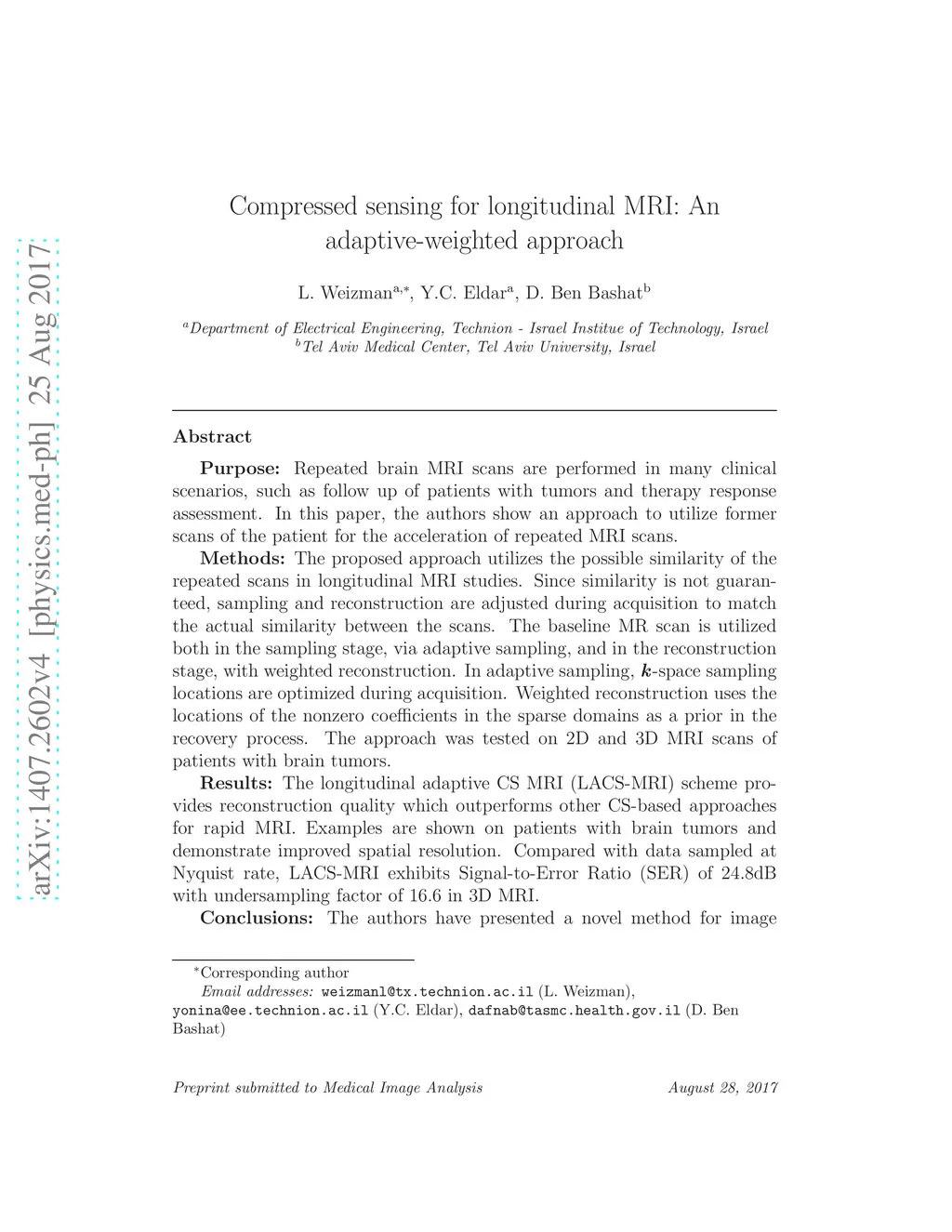Compressed sensing for longitudinal MRI: An adaptive-weighted approach
