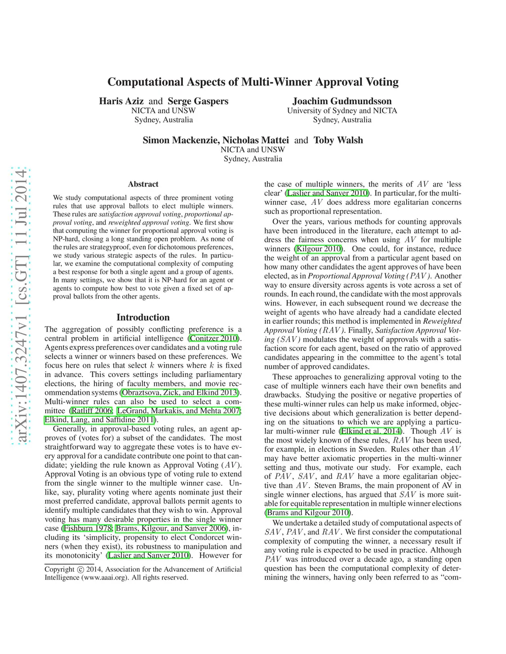Computational Aspects of Multi-Winner Approval Voting