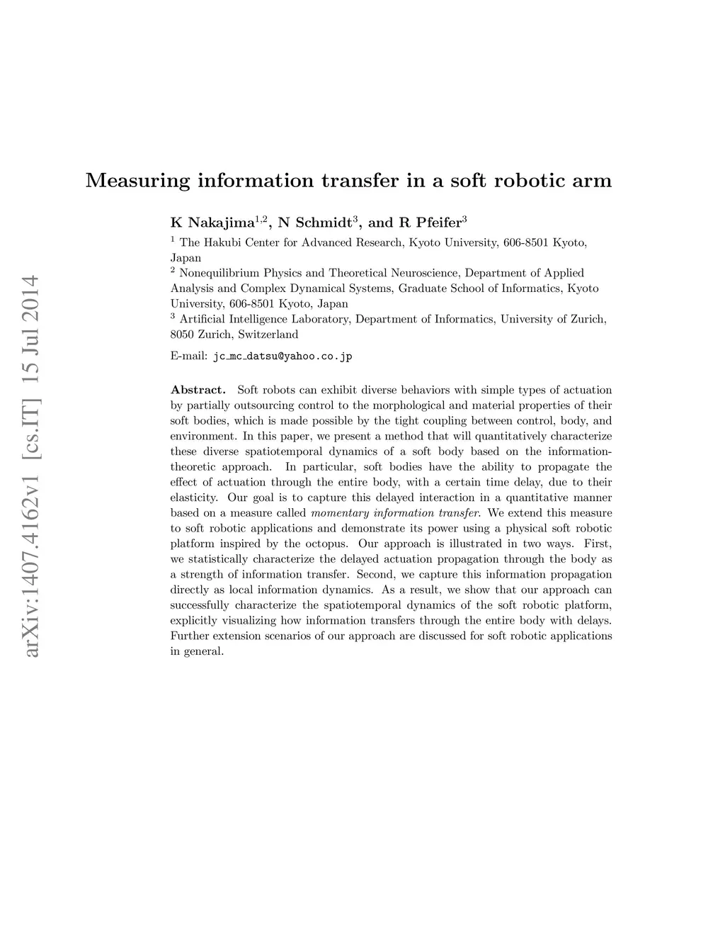 Measuring information transfer in a soft robotic arm