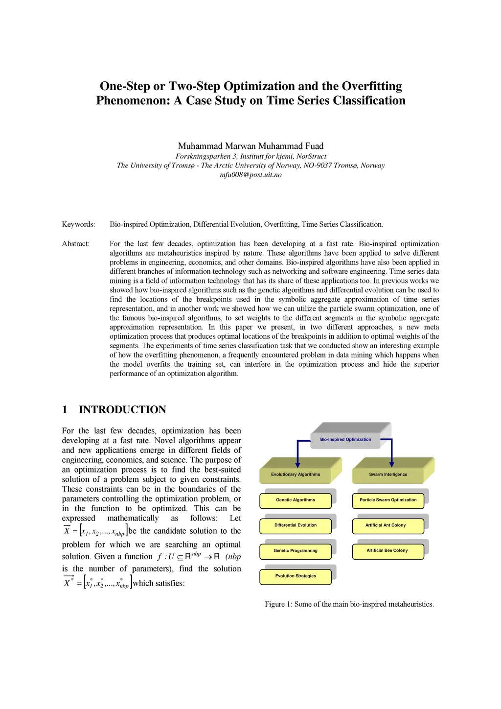 For the last few decades, optimization has been developing at a fast rate. Bio-inspired optimization algorithms are metaheuristics inspired by nature. These algorithms have been applied to solve different problems in engineering, economics, and other domains. Bio-inspired algorithms have also been applied in different branches of information technology such as networking and software engineering. Time series data mining is a field of information technology that has its share of these applications too. In previous works we showed how bio-inspired algorithms such as the genetic algorithms and differential evolution can be used to find the locations of the breakpoints used in the symbolic aggregate approximation of time series representation, and in another work we showed how we can utilize the particle swarm optimization, one of the famous bio-inspired algorithms, to set weights to the different segments in the symbolic aggregate approximation representation. In this paper we present, in two different approaches, a new meta optimization process that produces optimal locations of the breakpoints in addition to optimal weights of the segments. The experiments of time series classification task that we conducted show an interesting example of how the overfitting phenomenon, a frequently encountered problem in data mining which happens when the model overfits the training set, can interfere in the optimization process and hide the superior performance of an optimization algorithm.