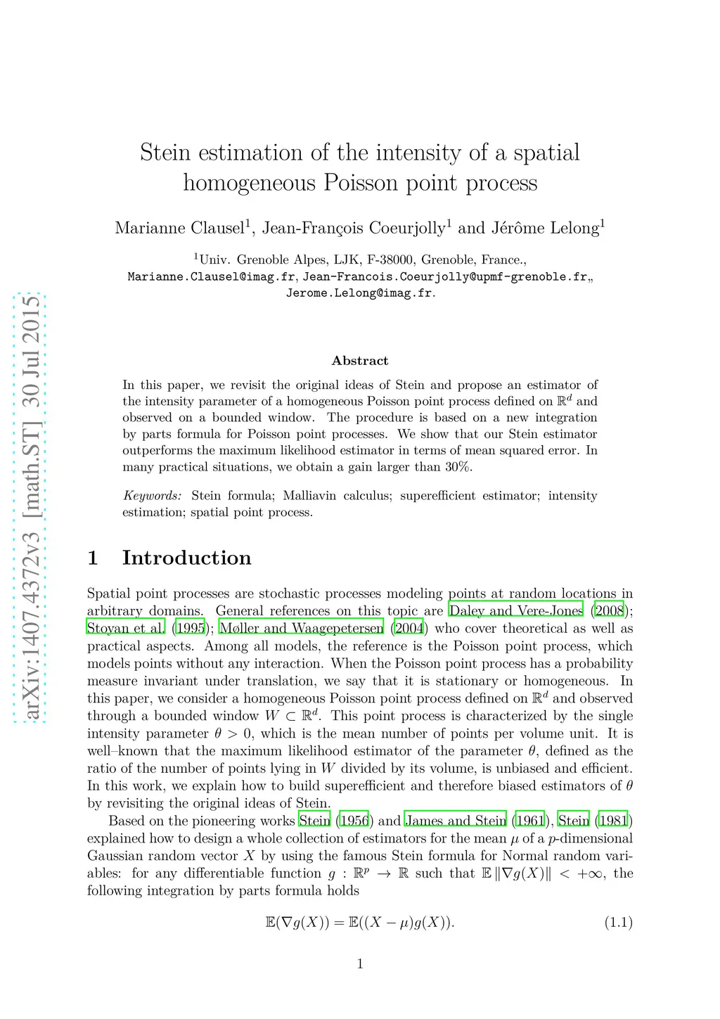 In this paper, we revisit the original ideas of Stein and propose an estimator of the intensity parameter of a homogeneous Poisson point process defined in and observed in a bounded window. The procedure is based on a new general integration by parts formula for Poisson point processes. We show that our Stein estimator outperforms the maximum likelihood estimator in terms of mean squared error. In particular, we show that in many practical situations we have a gain larger than 30\%.