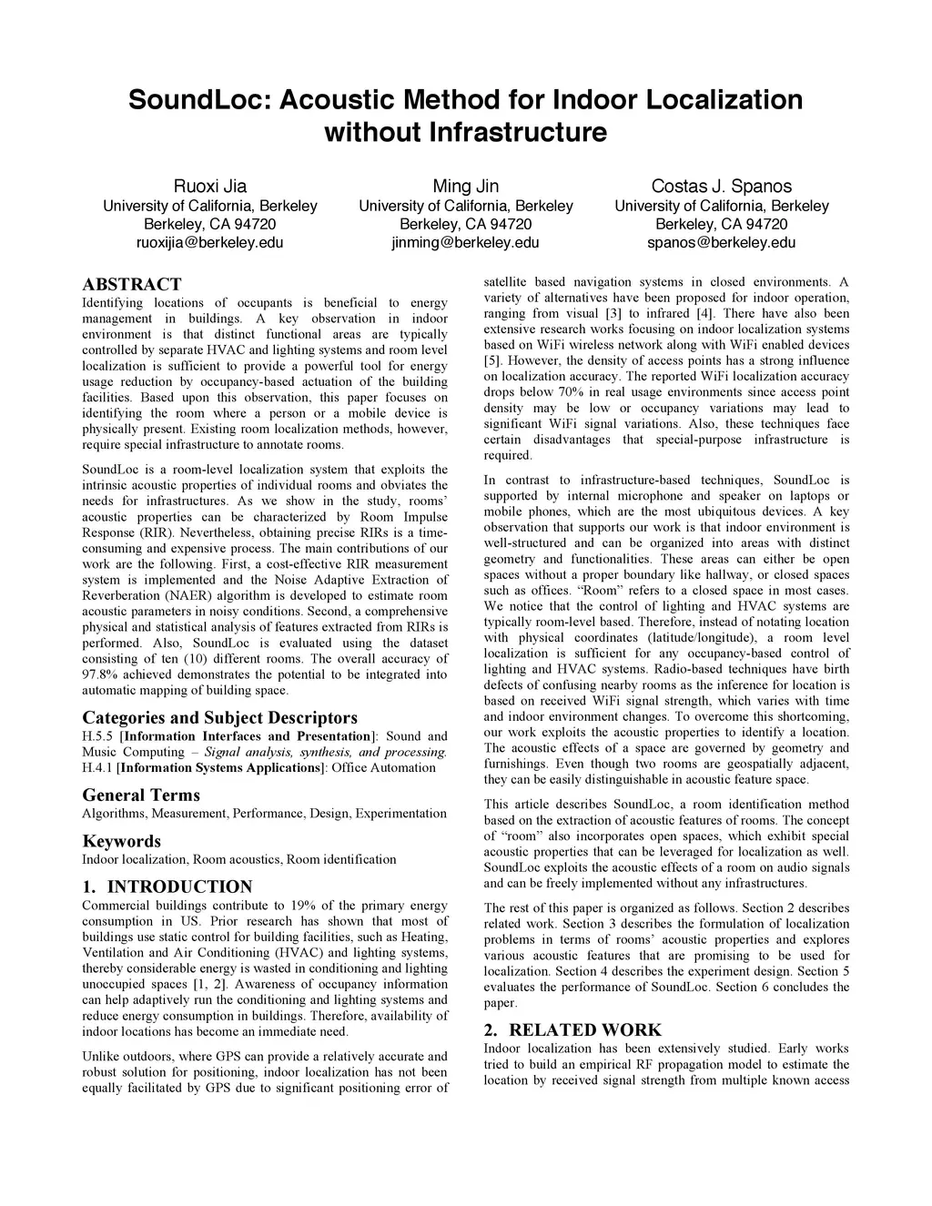 SoundLoc: Acoustic Method for Indoor Localization without Infrastructure