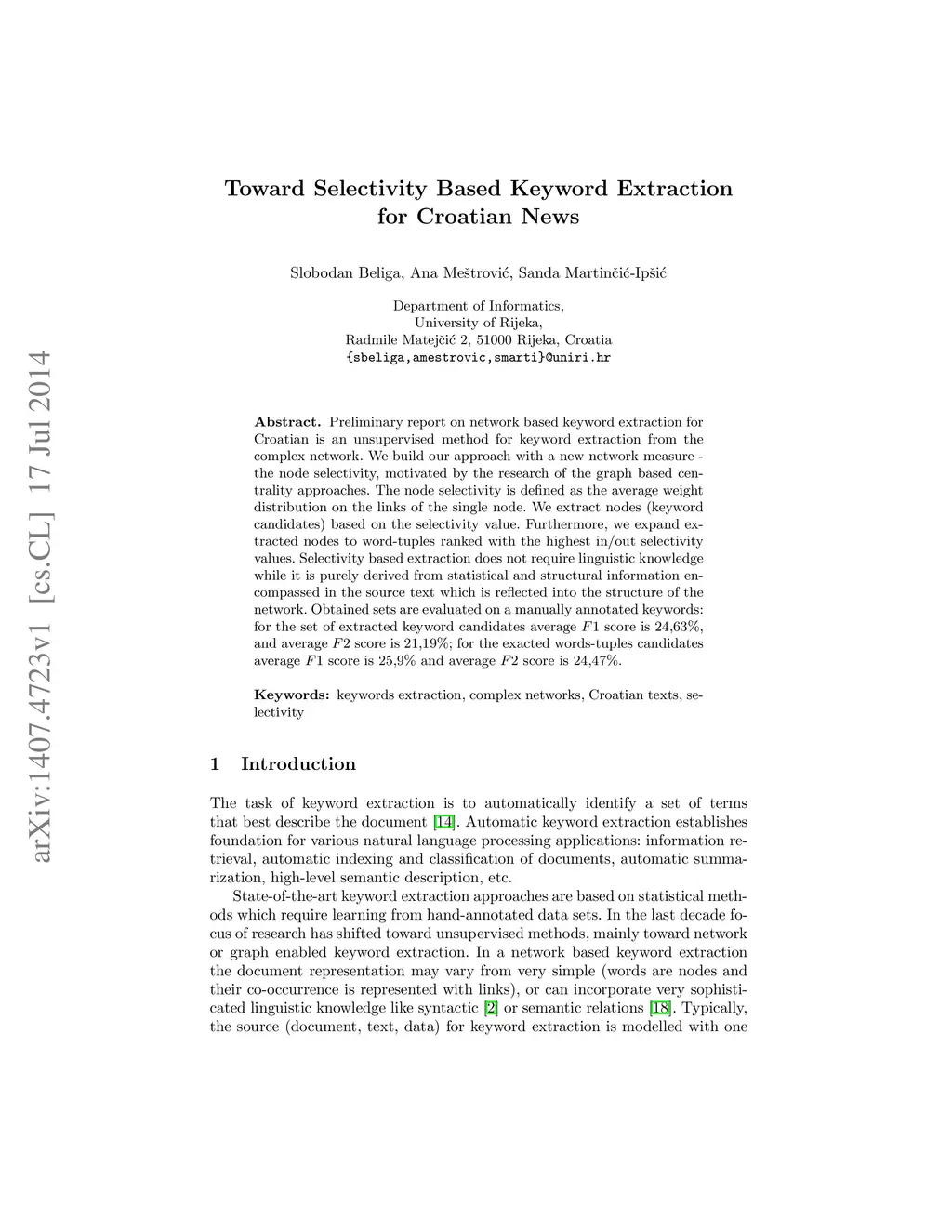 Toward Selectivity Based Keyword Extraction for Croatian News