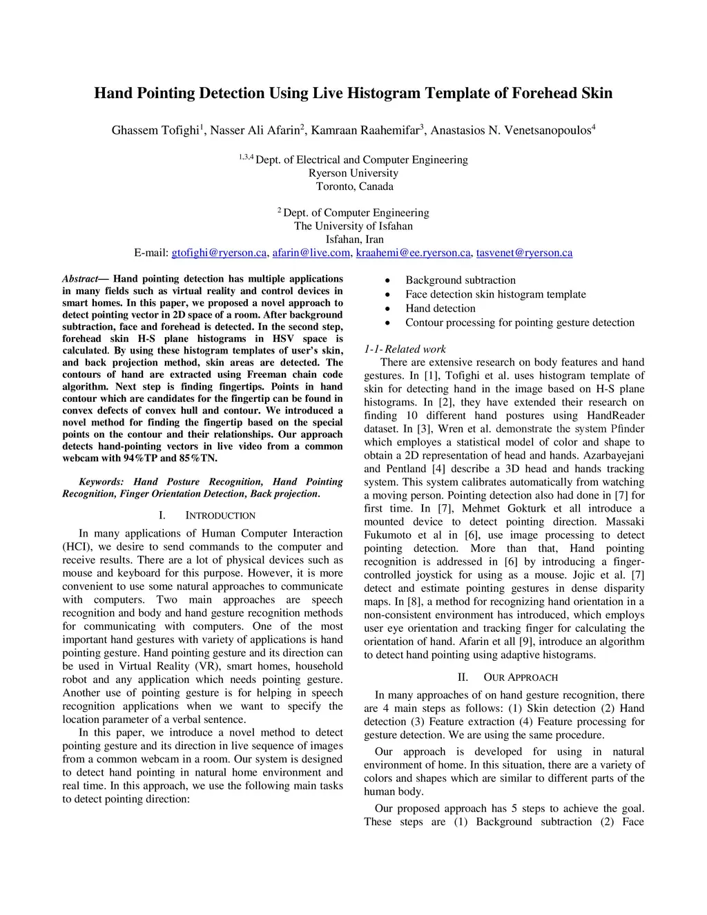 Hand Pointing Detection Using Live Histogram Template of Forehead Skin