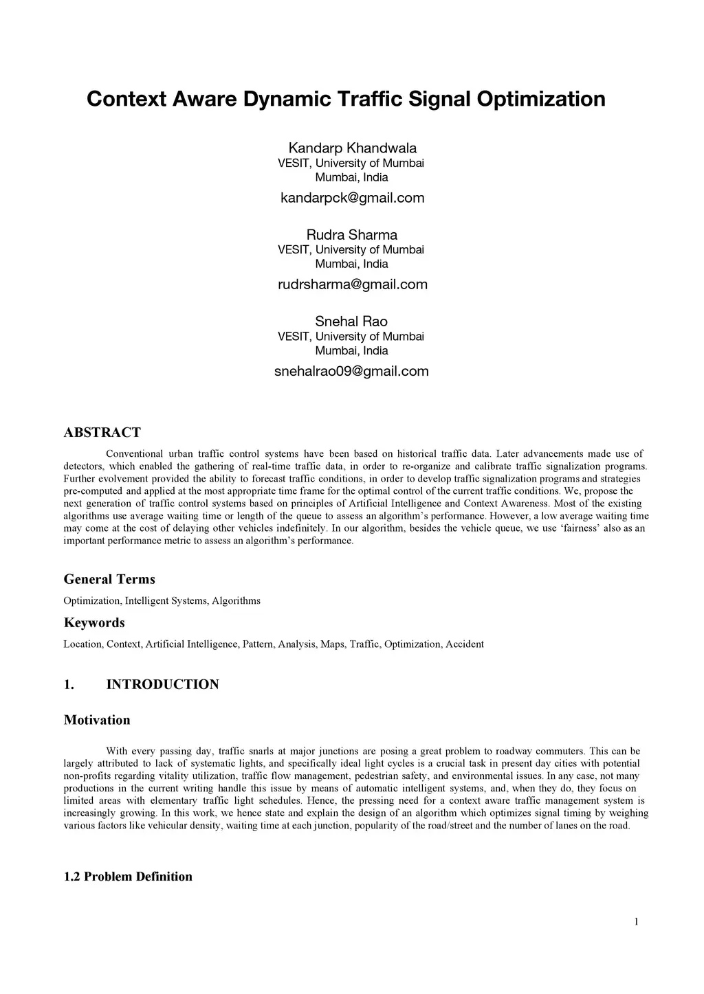 Conventional urban traffic control systems have been based on historical traffic data. Later advancements made use of detectors, which enabled the gathering of real time traffic data, in order to reorganize and calibrate traffic signalization programs. Further evolvement provided the ability to forecast traffic conditions, in order to develop traffic signalization programs and strategies precomputed and applied at the most appropriate time frame for the optimal control of the current traffic conditions. We, propose the next generation of traffic control systems based on principles of Artificial Intelligence and Context Awareness. Most of the existing algorithms use average waiting time or length of the queue to assess an algorithms performance. However, a low average waiting time may come at the cost of delaying other vehicles indefinitely. In our algorithm, besides the vehicle queue, we use fairness also as an important performance metric to assess an algorithms performance.