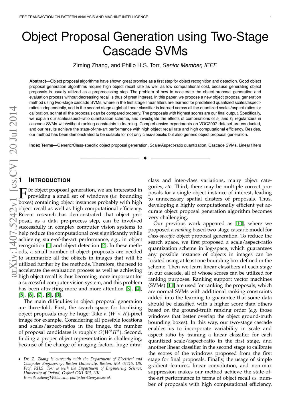 Object Proposal Generation using Two-Stage Cascade SVMs