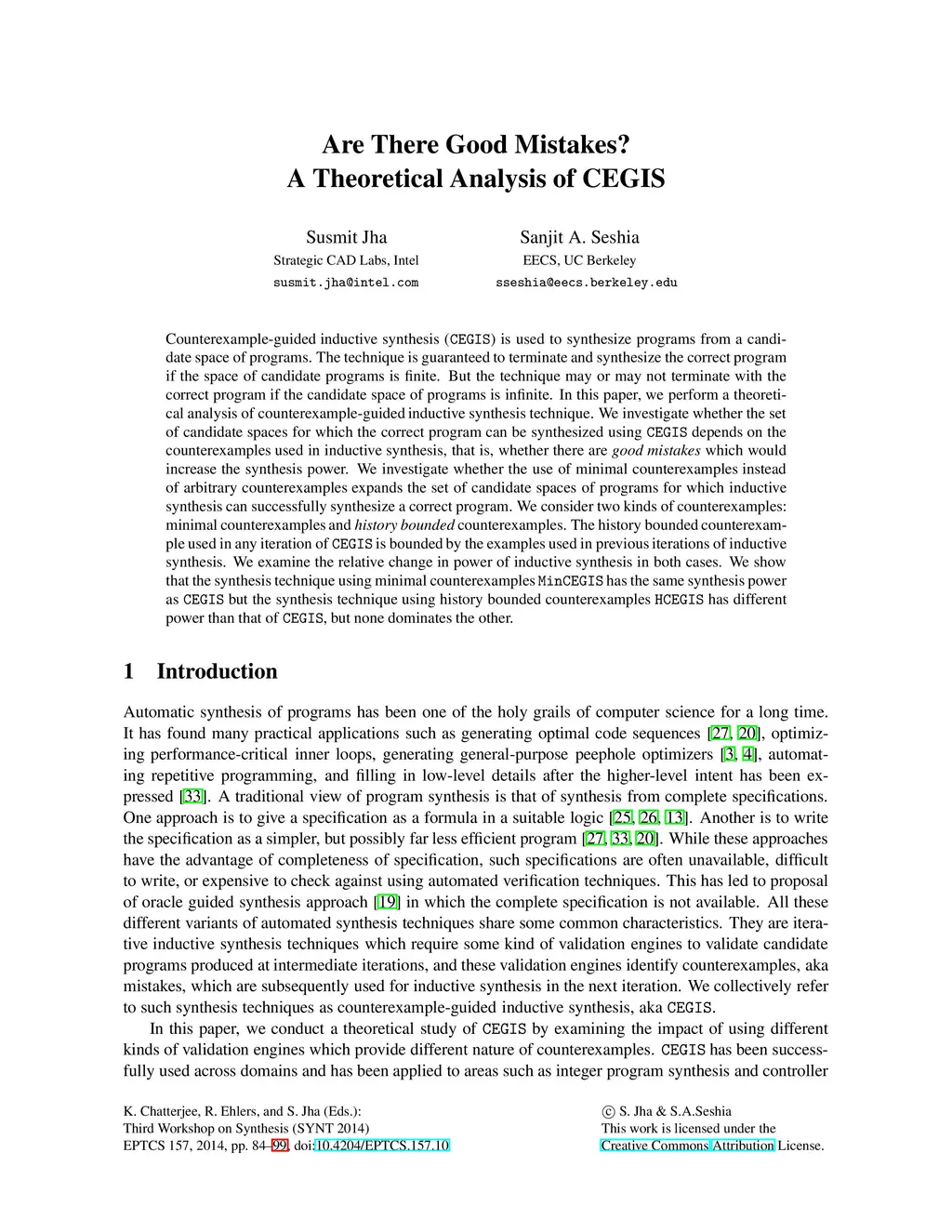 Are There Good Mistakes? A Theoretical Analysis of CEGIS