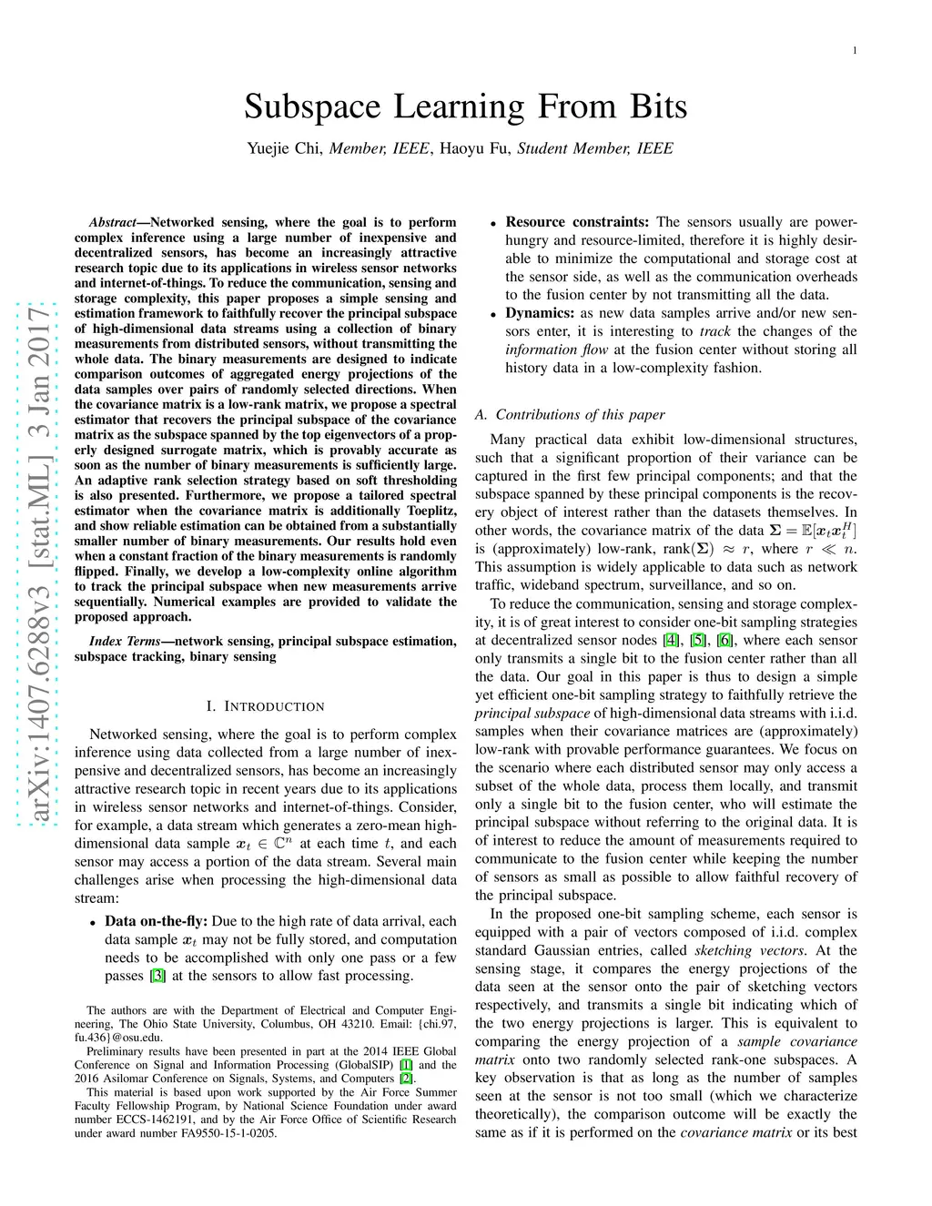 Subspace Learning From Bits