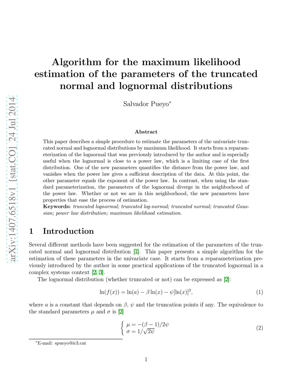 This paper describes a simple procedure to estimate the parameters of the univariate truncated normal and lognormal distributions by maximum likelihood. It starts from a reparameterization of the lognormal that was previously introduced by the author and is especially useful when the lognormal is close to a power law, which is a limiting case of the first distribution. One of the new parameters quantifies the distance from the power law, and vanishes when the power law gives a sufficient description of the data. At this point, the other parameter equals the exponent of the power law. In contrast, when using the standard parameterization, the parameters of the lognormal diverge in the neighborhood of the power law. Whether or not we are in this neighborhood, the new parameters have properties that ease the process of estimation.