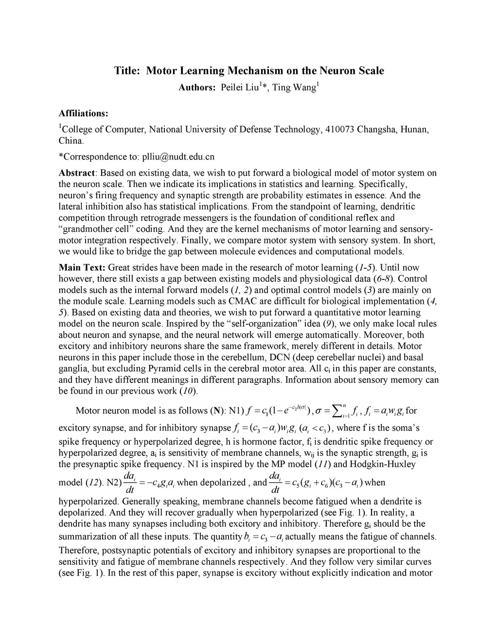 Motor Learning Mechanism on the Neuron Scale
