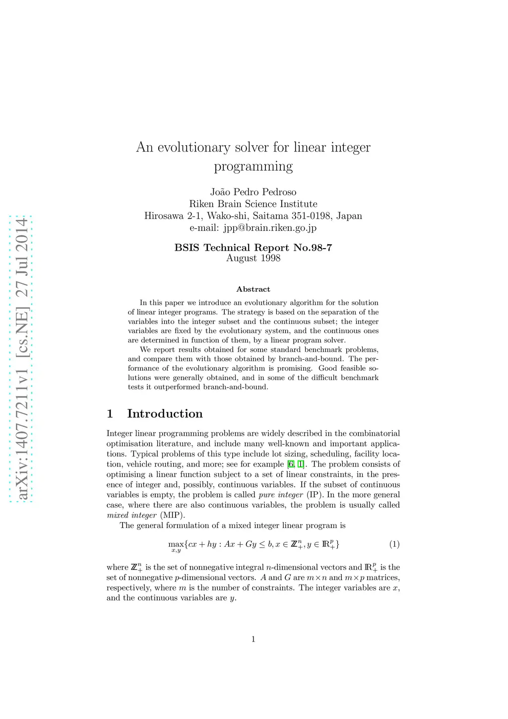 An evolutionary solver for linear integer programming