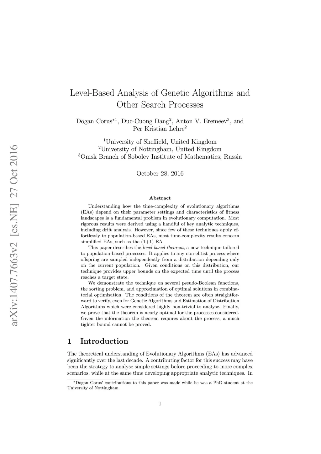 Understanding how the time-complexity of evolutionary algorithms (EAs) depend on their parameter settings and characteristics of fitness landscapes is a fundamental problem in evolutionary computation. Most rigorous results were derived using a handful of key analytic techniques, including drift analysis. However, since few of these techniques apply effortlessly to population-based EAs, most time-complexity results concern simplified EAs, such as the (1+1) EA. This paper describes the level-based theorem, a new technique tailored to population-based processes. It applies to any non-elitist process where offspring are sampled independently from a distribution depending only on the current population. Given conditions on this distribution, our technique provides upper bounds on the expected time until the process reaches a target state. We demonstrate the technique on several pseudo-Boolean functions, the sorting problem, and approximation of optimal solutions in combinatorial optimisation. The conditions of the theorem are often straightforward to verify, even for Genetic Algorithms and Estimation of Distribution Algorithms which were considered highly non-trivial to analyse. Finally, we prove that the theorem is nearly optimal for the processes considered. Given the information the theorem requires about the process, a much tighter bound cannot be proved.