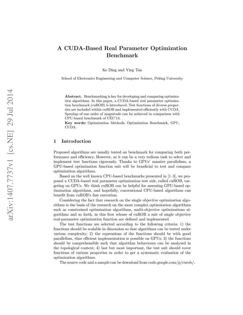 A CUDA-Based Real Parameter Optimization Benchmark