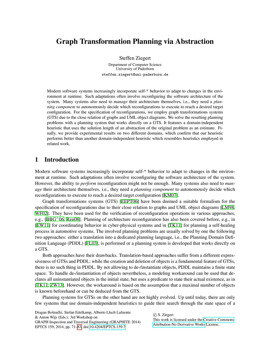 Modern software systems increasingly incorporate self-* behavior to adapt to changes in the environment at runtime. Such adaptations often involve reconfiguring the software architecture of the system. Many systems also need to manage their architecture themselves, i.e., they need a planning component to autonomously decide which reconfigurations to execute to reach a desired target configuration. For the specification of reconfigurations, we employ graph transformations systems (GTS) due to the close relation of graphs and UML object diagrams. We solve the resulting planning problems with a planning system that works directly on a GTS. It features a domain-independent heuristic that uses the solution length of an abstraction of the original problem as an estimate. Finally, we provide experimental results on two different domains, which confirm that our heuristic performs better than another domain-independent heuristic which resembles heuristics employed in related work.
