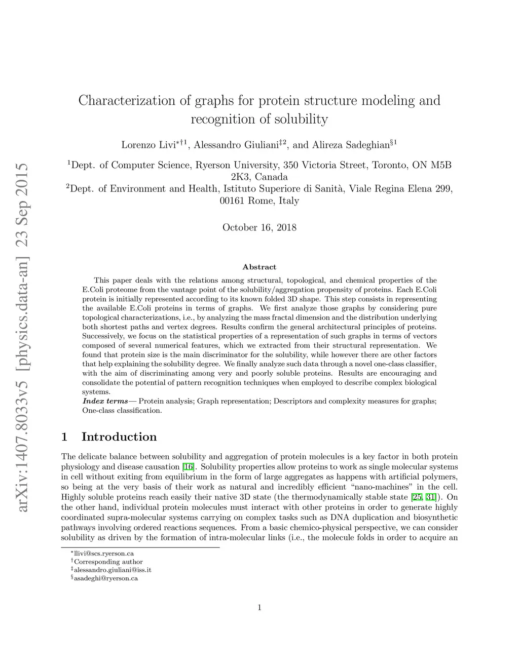 This paper deals with the relations among structural, topological, and chemical properties of the E.Coli proteome from the vantage point of the solubility/aggregation propensity of proteins. Each E.Coli protein is initially represented according to its known folded 3D shape. This step consists in representing the available E.Coli proteins in terms of graphs. We first analyze those graphs by considering pure topological characterizations, i.e., by analyzing the mass fractal dimension and the distribution underlying both shortest paths and vertex degrees. Results confirm the general architectural principles of proteins. Successively, we focus on the statistical properties of a representation of such graphs in terms of vectors composed of several numerical features, which we extracted from their structural representation. We found that protein size is the main discriminator for the solubility, while however there are other factors that help explaining the solubility degree. We finally analyze such data through a novel one-class classifier, with the aim of discriminating among very and poorly soluble proteins. Results are encouraging and consolidate the potential of pattern recognition techniques when employed to describe complex biological systems.