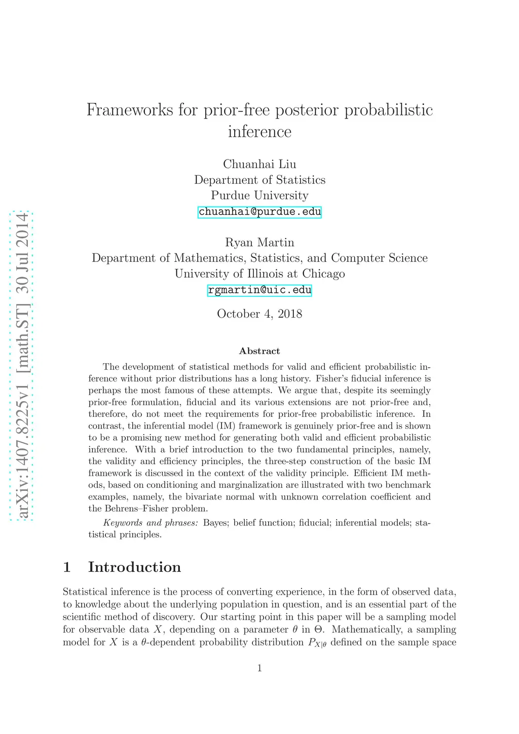 The development of statistical methods for valid and efficient probabilistic inference without prior distributions has a long history. Fisher's fiducial inference is perhaps the most famous of these attempts. We argue that, despite its seemingly prior-free formulation, fiducial and its various extensions are not prior-free and, therefore, do not meet the requirements for prior-free probabilistic inference. In contrast, the inferential model (IM) framework is genuinely prior-free and is shown to be a promising new method for generating both valid and efficient probabilistic inference. With a brief introduction to the two fundamental principles, namely, the validity and efficiency principles, the three-step construction of the basic IM framework is discussed in the context of the validity principle. Efficient IM methods, based on conditioning and marginalization are illustrated with two benchmark examples, namely, the bivariate normal with unknown correlation coefficient and the Behrens--Fisher problem.