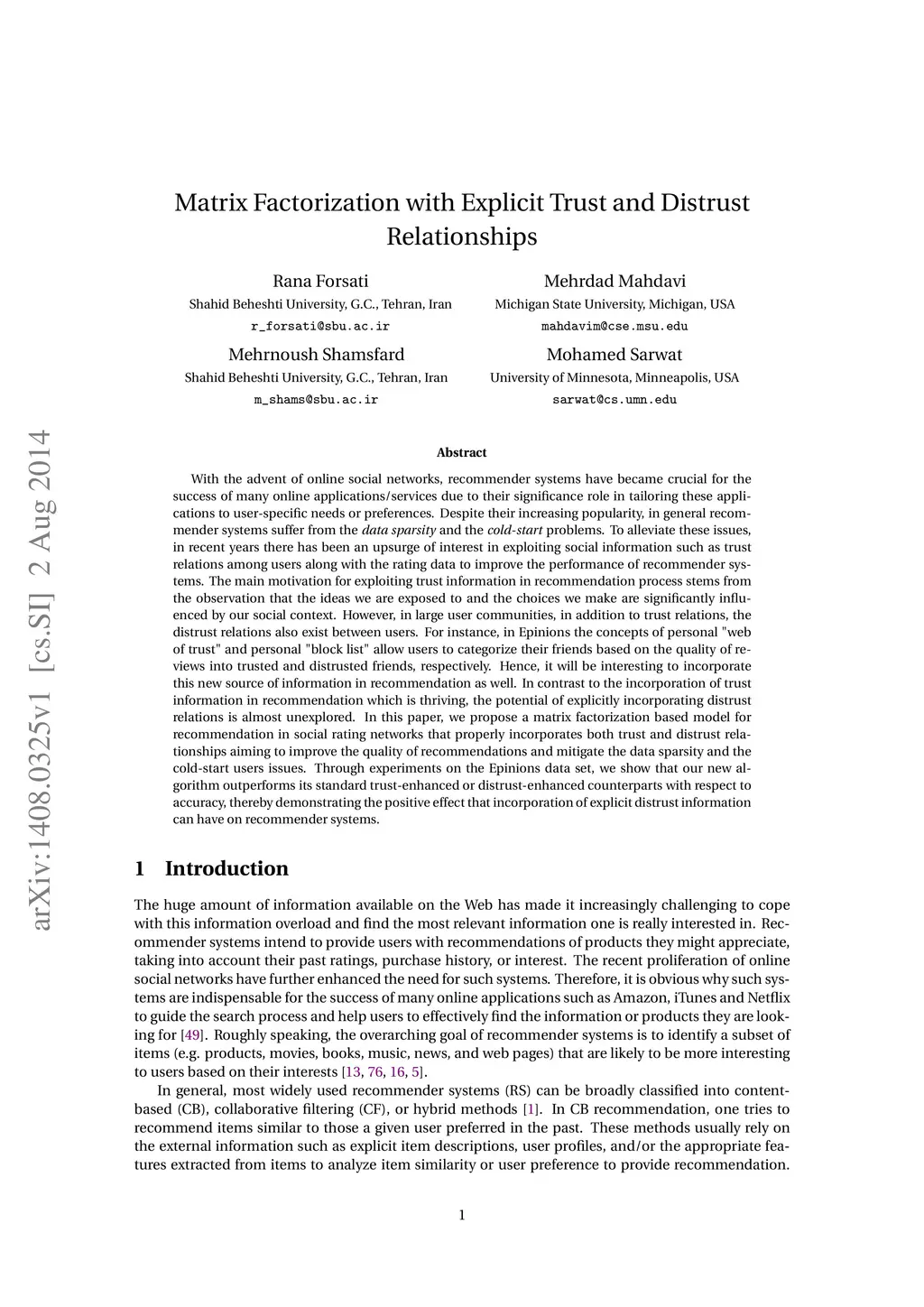 Matrix Factorization with Explicit Trust and Distrust Relationships
