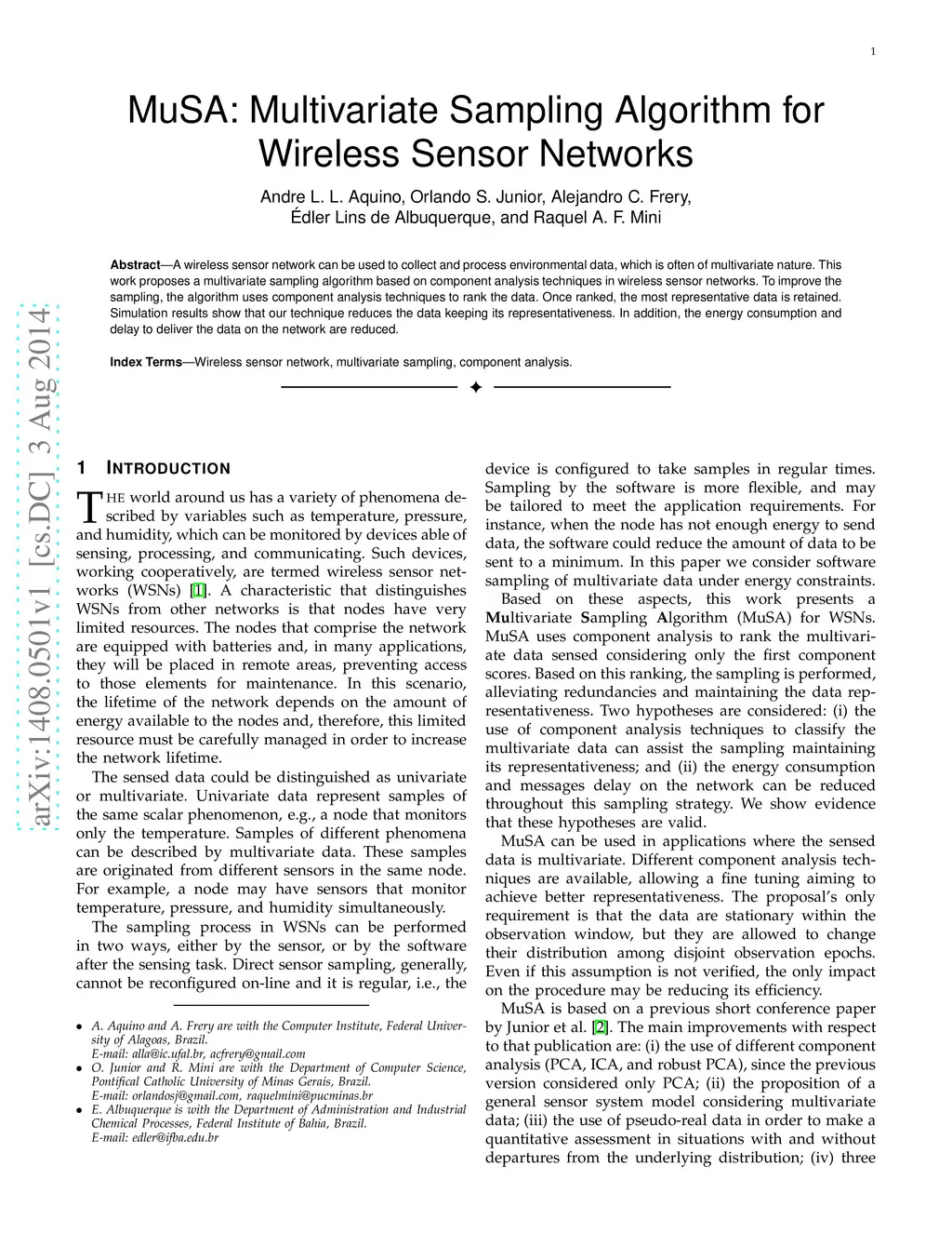 MuSA: Multivariate Sampling Algorithm for Wireless Sensor Networks