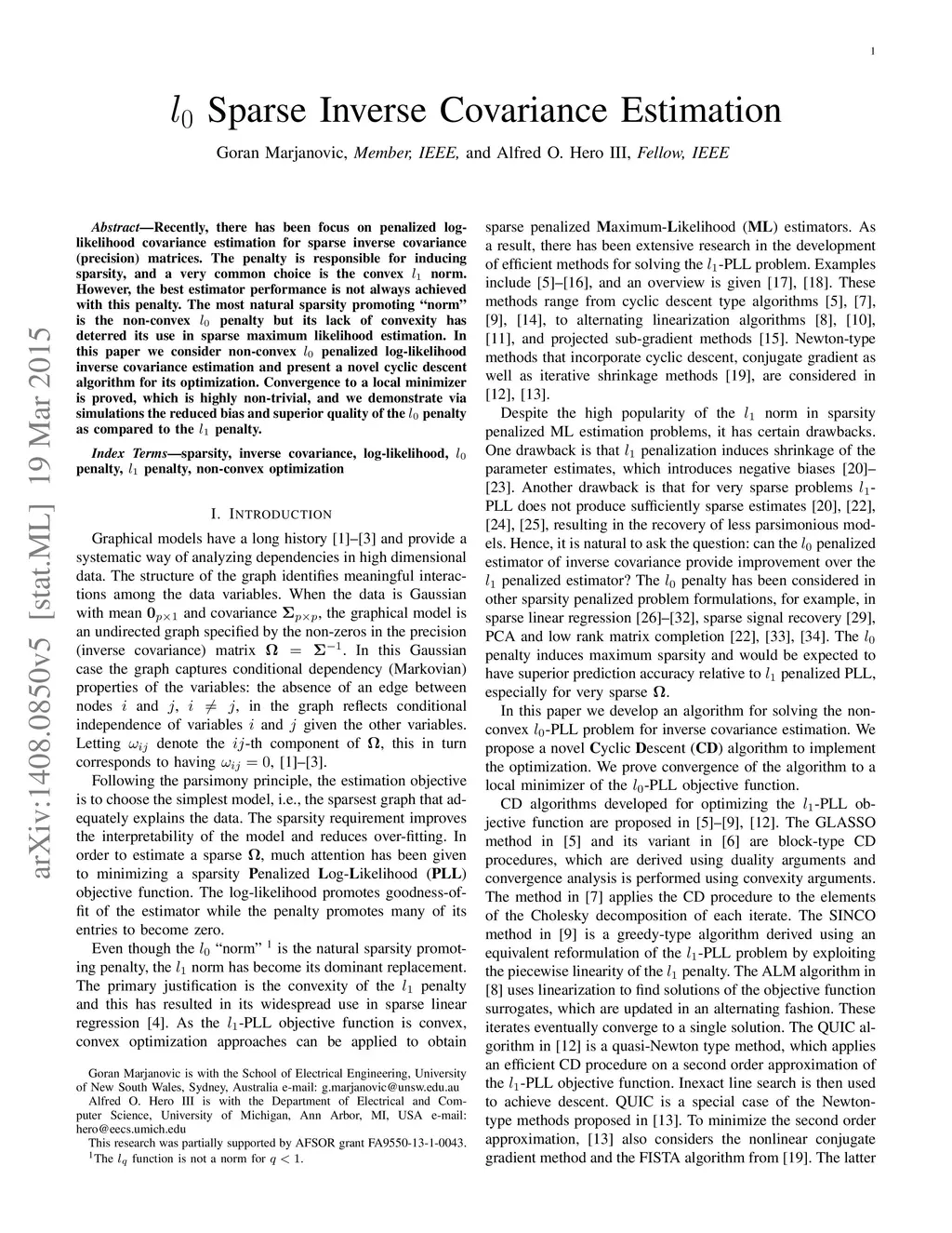 L0 Sparse Inverse Covariance Estimation