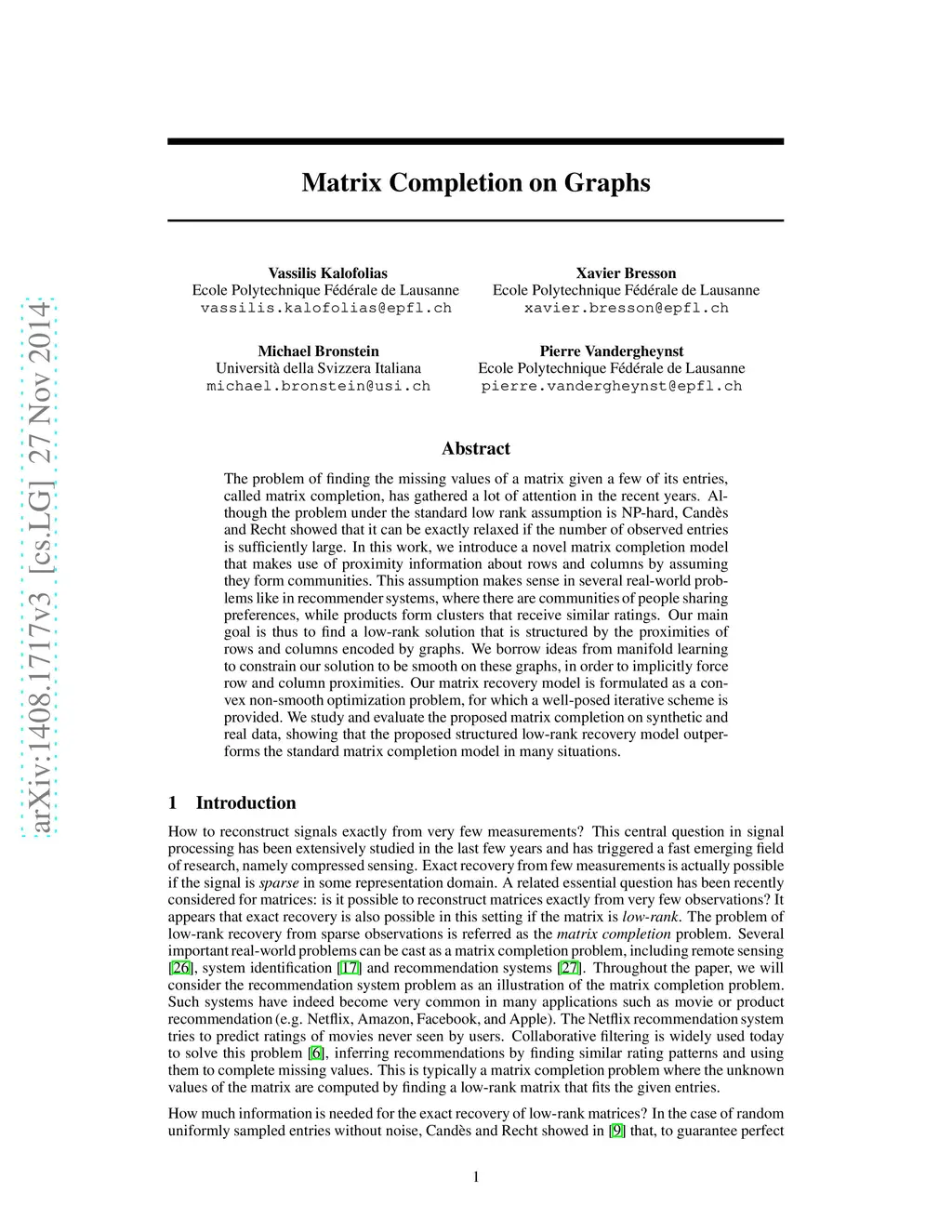 Matrix Completion on Graphs