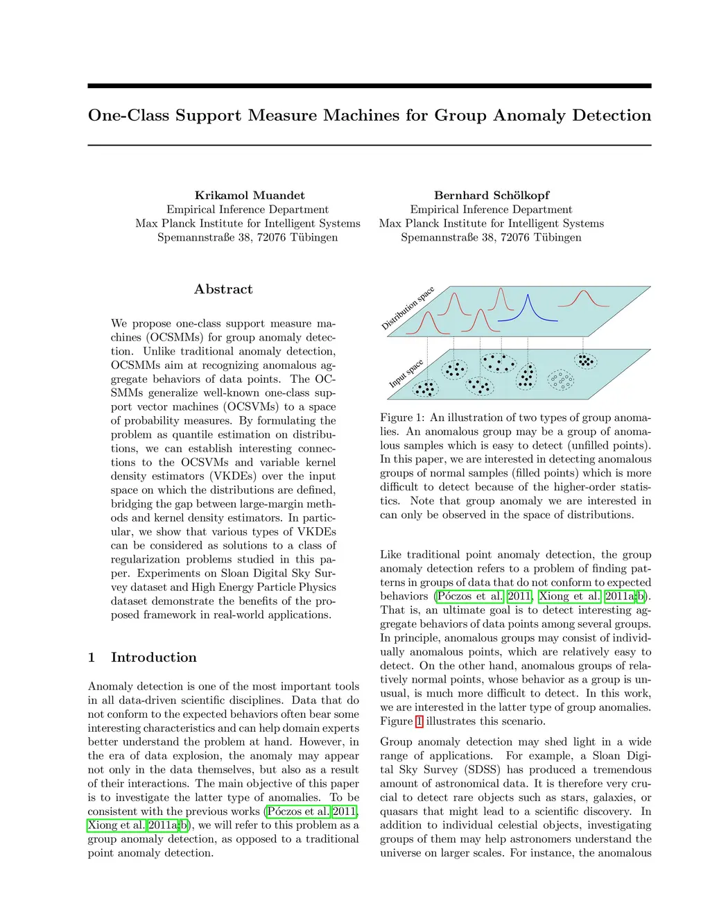 One-Class Support Measure Machines for Group Anomaly Detection