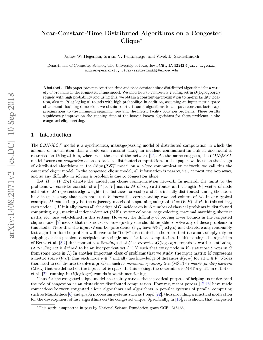 Near-Constant-Time Distributed Algorithms on a Congested Clique