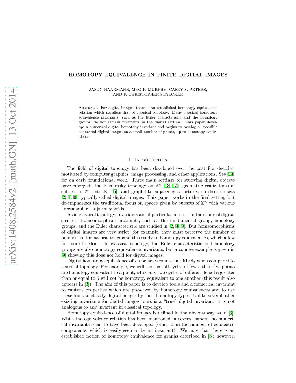 For digital images, there is an established homotopy equivalence relation which parallels that of classical topology. Many classical homotopy equivalence invariants, such as the Euler characteristic and the homology groups, do not remain invariants in the digital setting. This paper develops a numerical digital homotopy invariant and begins to catalog all possible connected digital images on a small number of points, up to homotopy equivalence.