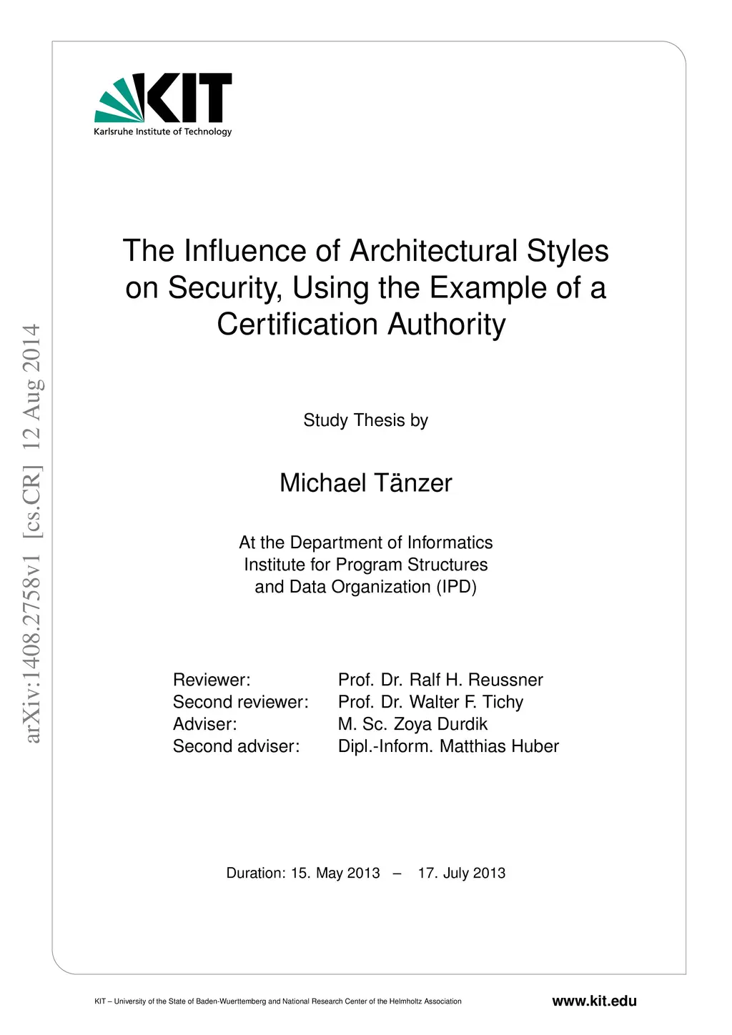 Often, security is considered in an advanced stage of the implementation of a system, rather than integrating it into the system design. This leads to less secure systems, as the security mechanisms are only applied as an afterthought and therefore do not integrate well with the rest of the design. Also, several statistics about discovered vulnerabilities in existing systems suggest, that most of the vulnerabilities of a system are not caused by errors in the cryptographic primitives, but in other parts of the implementation. So integrating security concerns early in the design process seems a promising approach for increasing the security of the resulting system. This work evaluates how the choice of the architectural style affects the security of the resulting system. The evaluation is done on the example of an existing certification authority (CA). The requirements for the system are gathered and multiple designs according to different architectural styles are drafted and evaluated using a risk evaluation method. Then the evaluated designs are compared to find out whether there are significant differences.