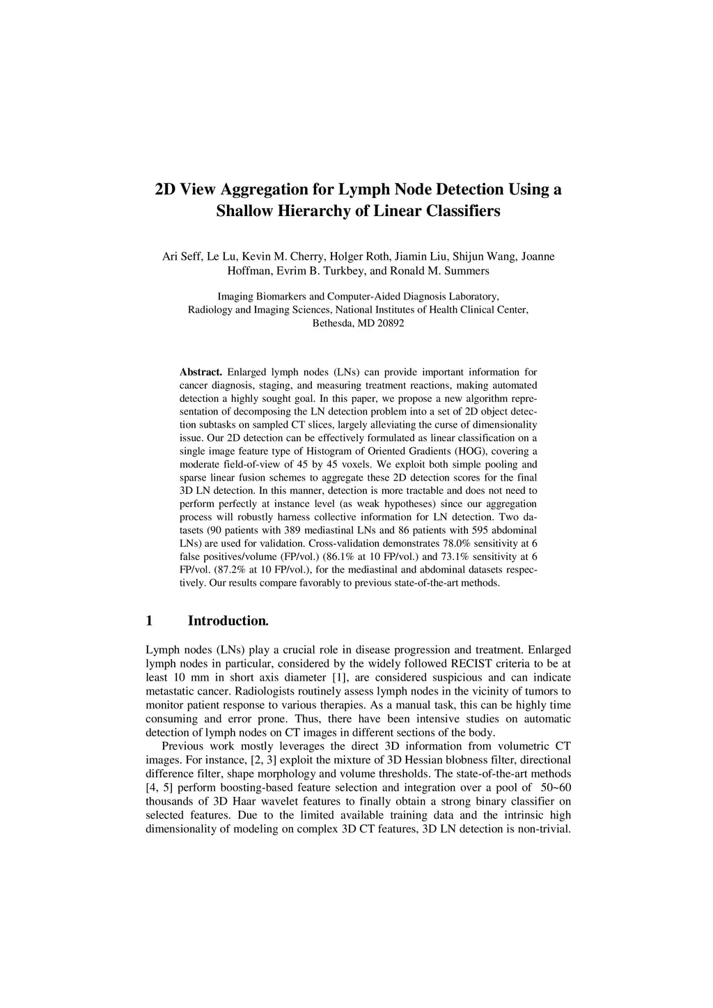 2D View Aggregation for Lymph Node Detection Using a Shallow Hierarchy