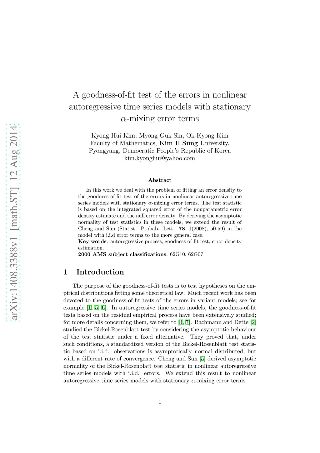In this work we deal with the problem of fitting an error density to the goodness-of-fit test of the errors in nonlinear autoregressive time series models with stationary -mixing error terms. The test statistic is based on the integrated squared error of the nonparametric error density estimate and the null error density. By deriving the asymptotic normality of test statistics in these models, we extend the result of Cheng and Sun (Statist. Probab. Lett. \textbf{78}, 1(2008), 50-59) in the model with i.i.d error terms to the more general case.
