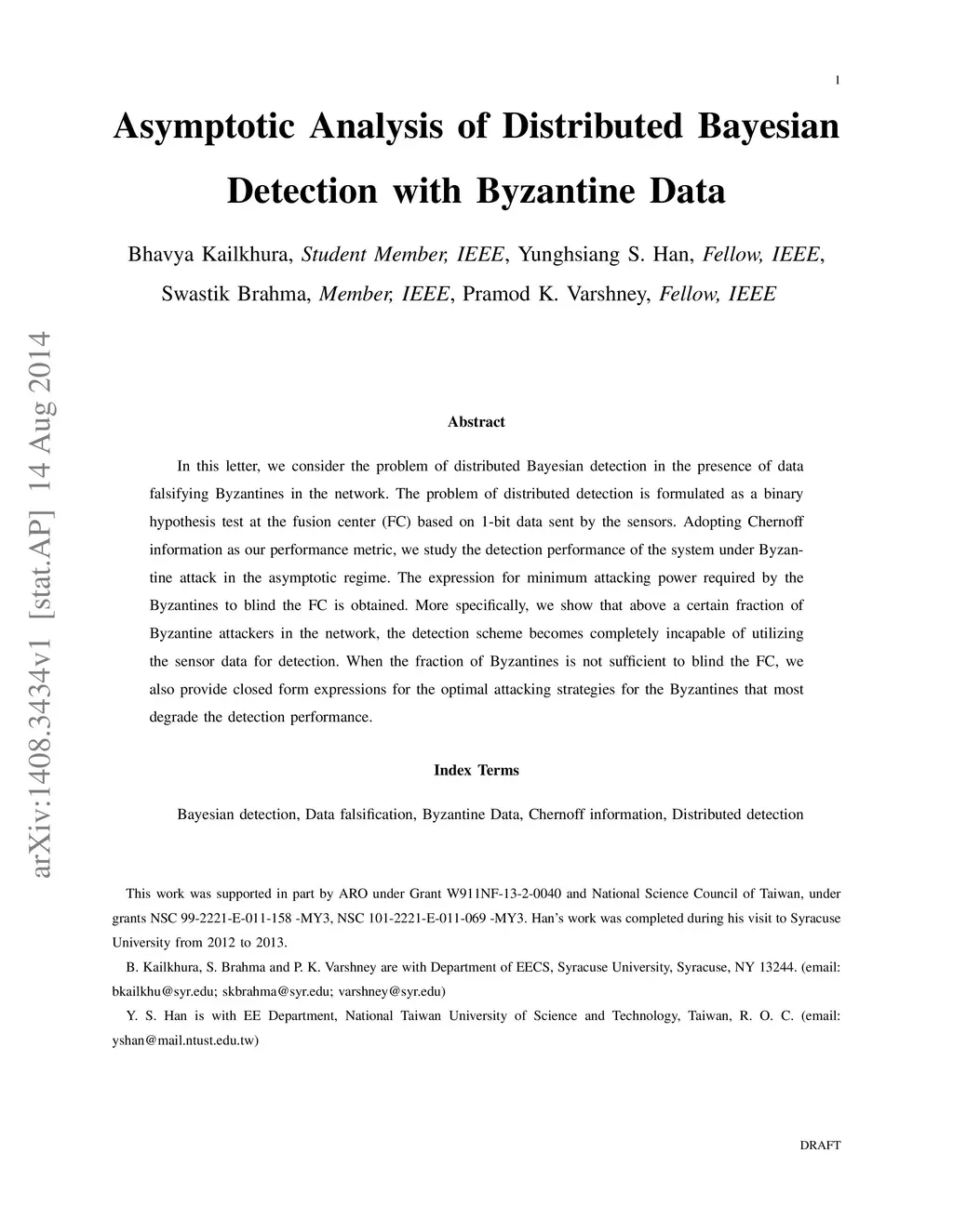 Asymptotic Analysis of Distributed Bayesian Detection with Byzantine