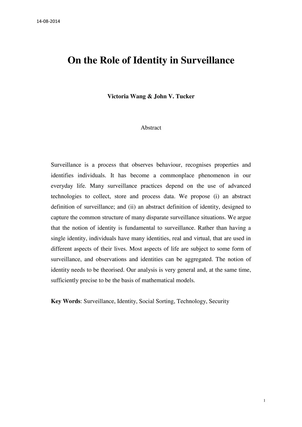 Surveillance is a process that observes behaviour, recognises properties and identifies individuals. It has become a commonplace phenomenon in our everyday life. Many surveillance practices depend on the use of advanced technologies to collect, store and process data. We propose (i) an abstract definition of surveillance; and (ii) an abstract definition of identity, designed to capture the common structure of many disparate surveillance situations. We argue that the notion of identity is fundamental to surveillance. Rather than having a single identity, individuals have many identities, real and virtual, that are used in different aspects of their lives. Most aspects of life are subject to some form of surveillance, and observations and identities can be aggregated. The notion of identity needs to be theorised. Our analysis is very general and, at the same time, sufficiently precise to be the basis of mathematical models.