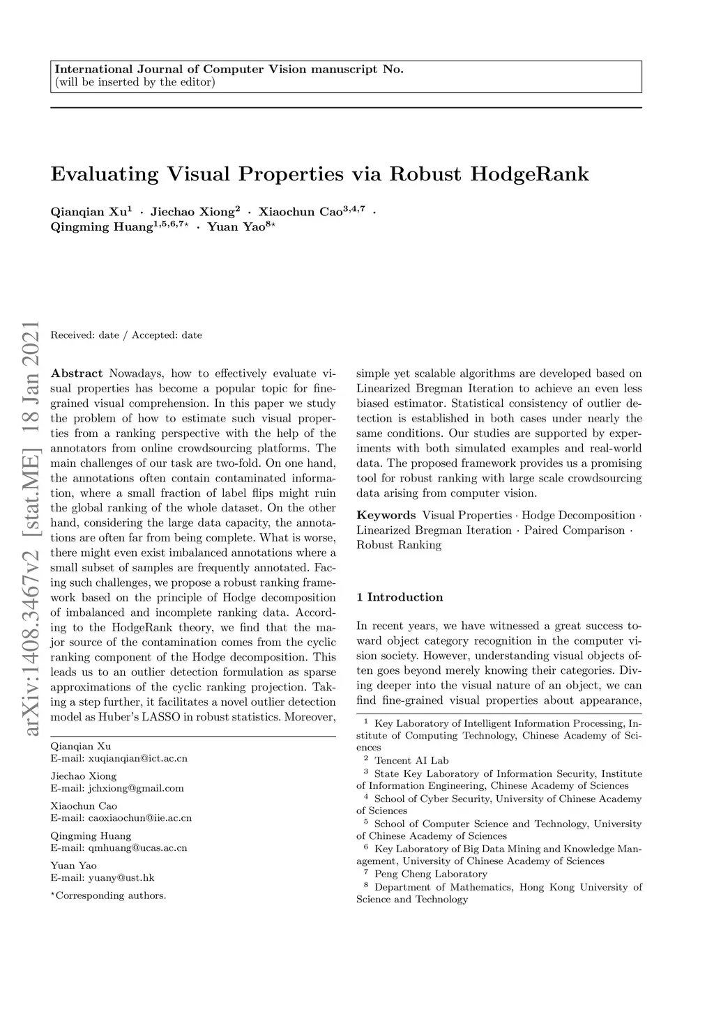 Evaluating Visual Properties via Robust HodgeRank