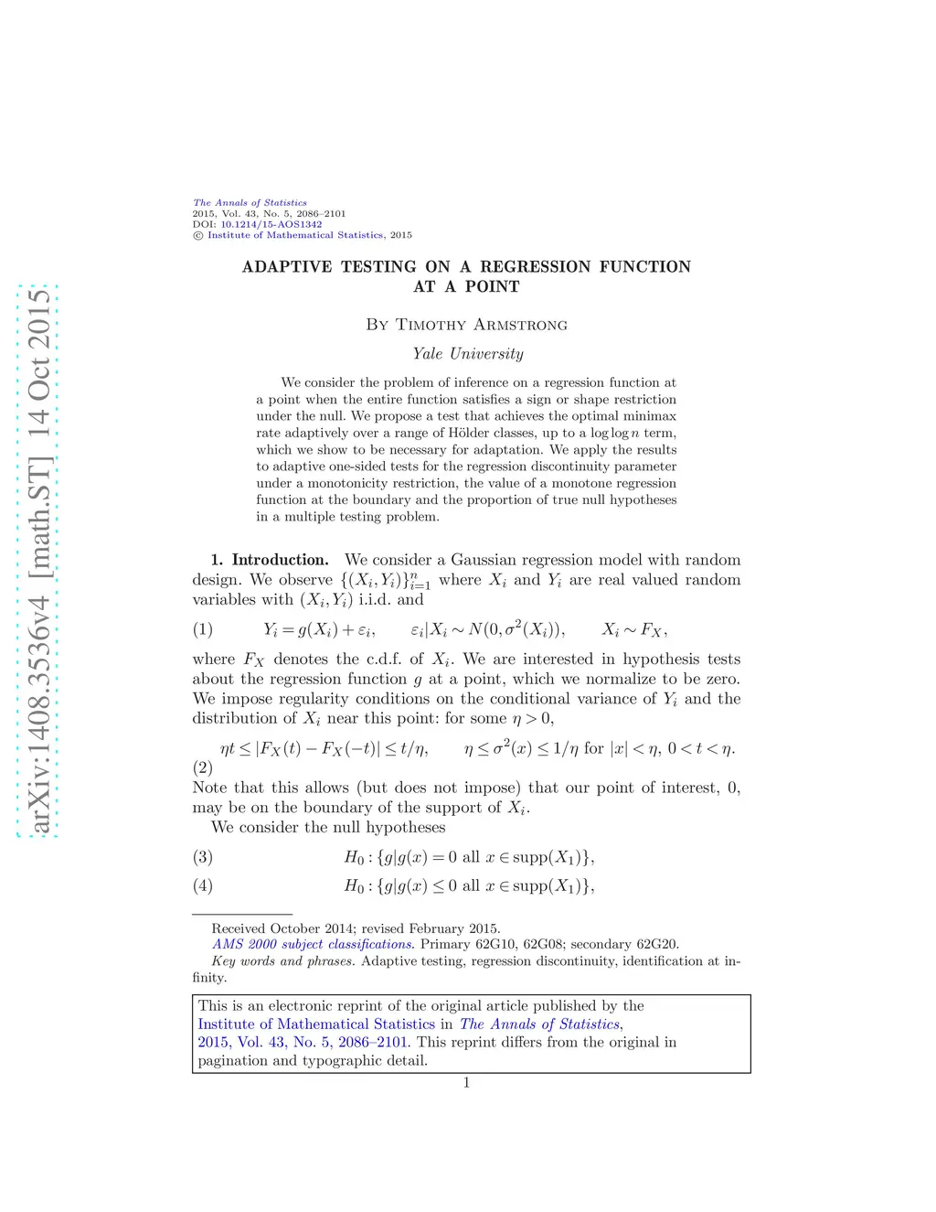 We consider the problem of inference on a regression function at a point when the entire function satisfies a sign or shape restriction under the null. We propose a test that achieves the optimal minimax rate adaptively over a range of H\"{o}lder classes, up to a term, which we show to be necessary for adaptation. We apply the results to adaptive one-sided tests for the regression discontinuity parameter under a monotonicity restriction, the value of a monotone regression function at the boundary and the proportion of true null hypotheses in a multiple testing problem.