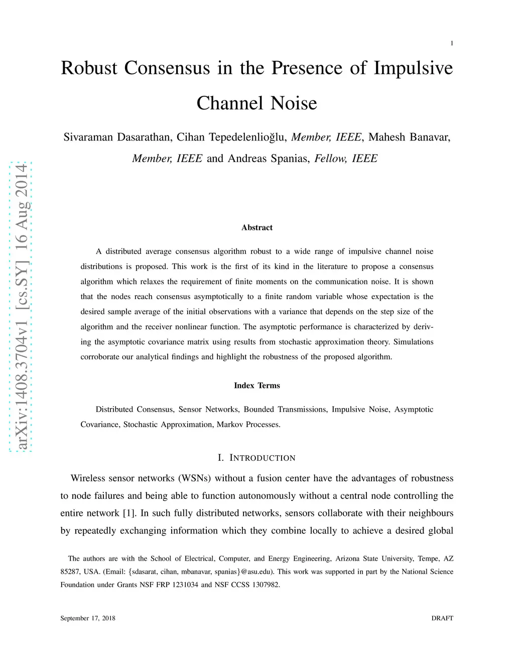 Robust Consensus in the Presence of Impulsive Channel Noise