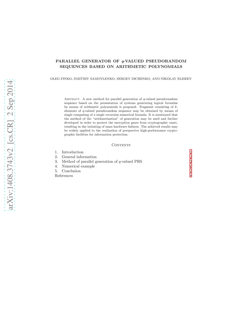 A new method for parallel generation of -valued pseudorandom sequence based on the presentation of systems generating logical formulae by means of arithmetic polynomials is proposed. Fragment consisting of -elements of -valued pseudorandom sequence may be obtained by means of single calculation of a single recursion numerical formula. It is mentioned that the method of the "arithmetization" of generation may be used and further developed in order to protect the encryption gears from cryptographic onset, resulting in the initiating of mass hardware failures. The achieved results may be widely applied to the realization of perspective high-performance cryptographic facilities for information protection.