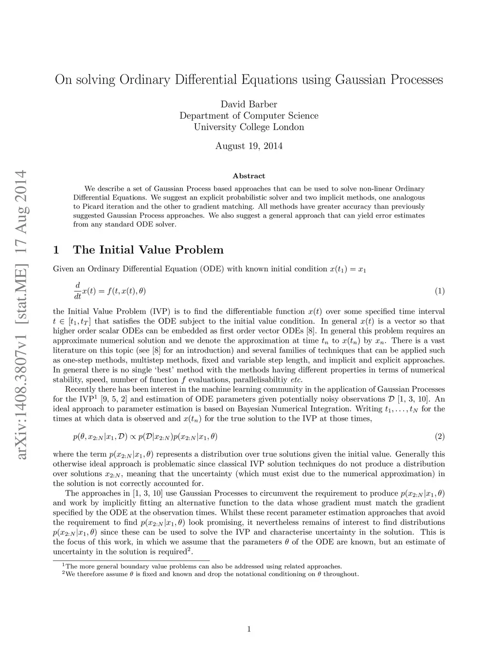 We describe a set of Gaussian Process based approaches that can be used to solve non-linear Ordinary Differential Equations. We suggest an explicit probabilistic solver and two implicit methods, one analogous to Picard iteration and the other to gradient matching. All methods have greater accuracy than previously suggested Gaussian Process approaches. We also suggest a general approach that can yield error estimates from any standard ODE solver.
