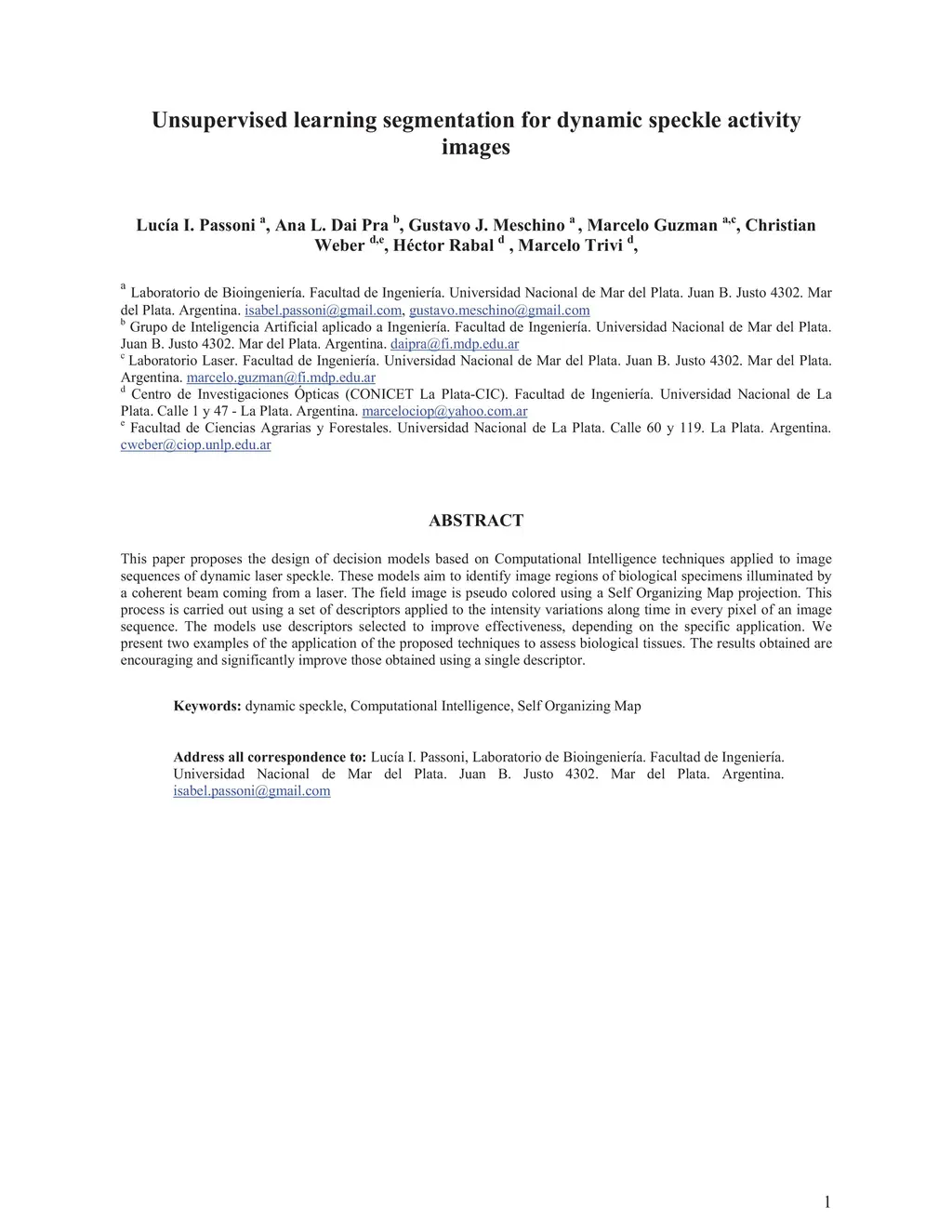Unsupervised learning segmentation for dynamic speckle activity images