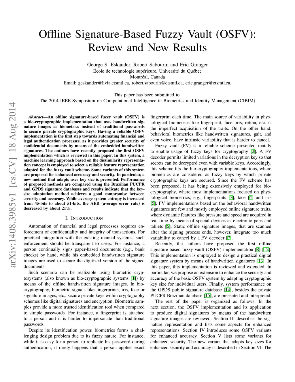 Offline Signature-Based Fuzzy Vault (OSFV: Review and New Results
