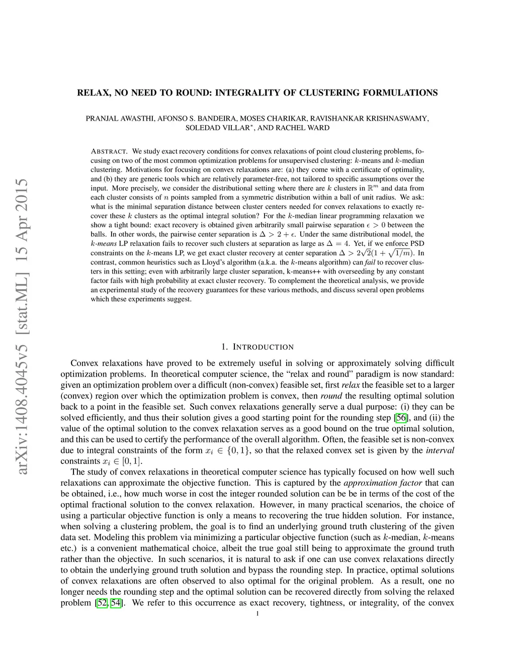Relax, no need to round: integrality of clustering formulations