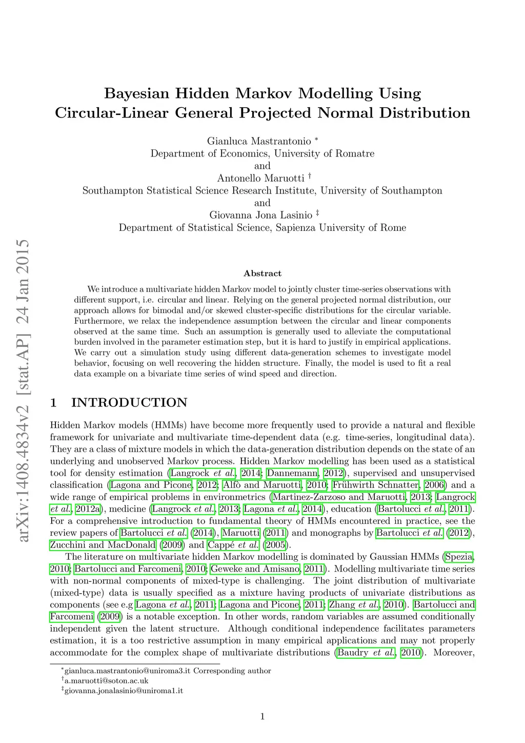 Bayesian Hidden Markov Modelling Using Circular-Linear General Projected