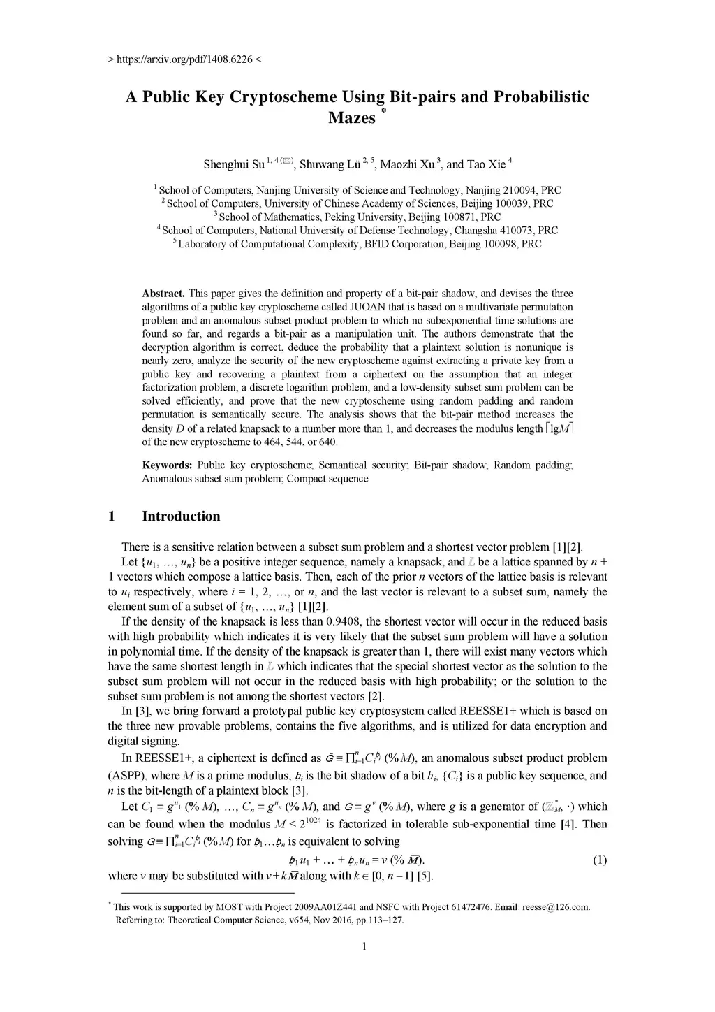 The authors give the definition and property of a bit-pair shadow, and design the three algorithms of a public key cryptoscheme that is based on a multivariate permutation problem (MPP) and an anomalous subset product problem (ASPP) to which no subexponential time solutions are found so far, and regards a bit-pair as an operation unit. Further, demonstrate that the decryption algorithm is correct, deduce the probability that a plaintext solution is nonunique is nearly zero, dissect the running times of the three algorithms, analyze the security of the new scheme against extracting a private key from a public key and recovering a related plaintext from a ciphertext by LLL lattice basis reduction, meet-in-the-middle dichotomy, and adaptive-chosen-ciphertext approach on the assumption that an integer factorization problem, a discrete logarithm problem, and a low-density subset sum problem can be solved efficiently, and prove that new scheme using random both padding and permutation is semantically secure. Meantime, give a conversion from an ASPP to an anomalous subset sum problem (ASSP). The analysis shows that the bit-pair method increases the density of a related ASSP knapsack to D > 1, and decreases the modulus length of the new scheme to lgM = 464, 544, or 640 corresponding to n = 80, 96, or 112 separately.