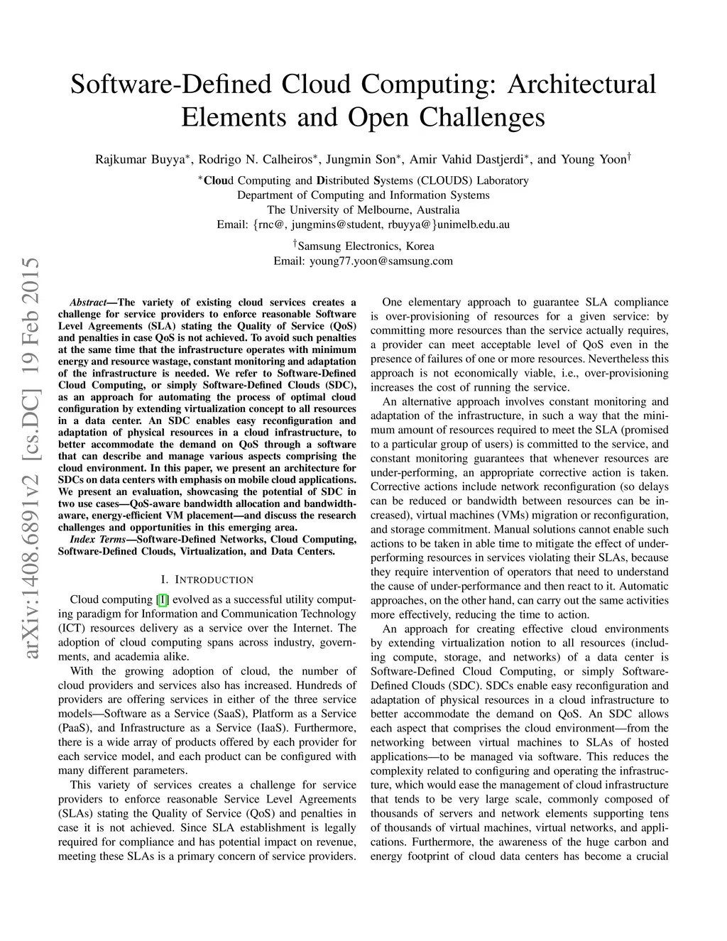Software-Defined Cloud Computing: Architectural Elements and Open