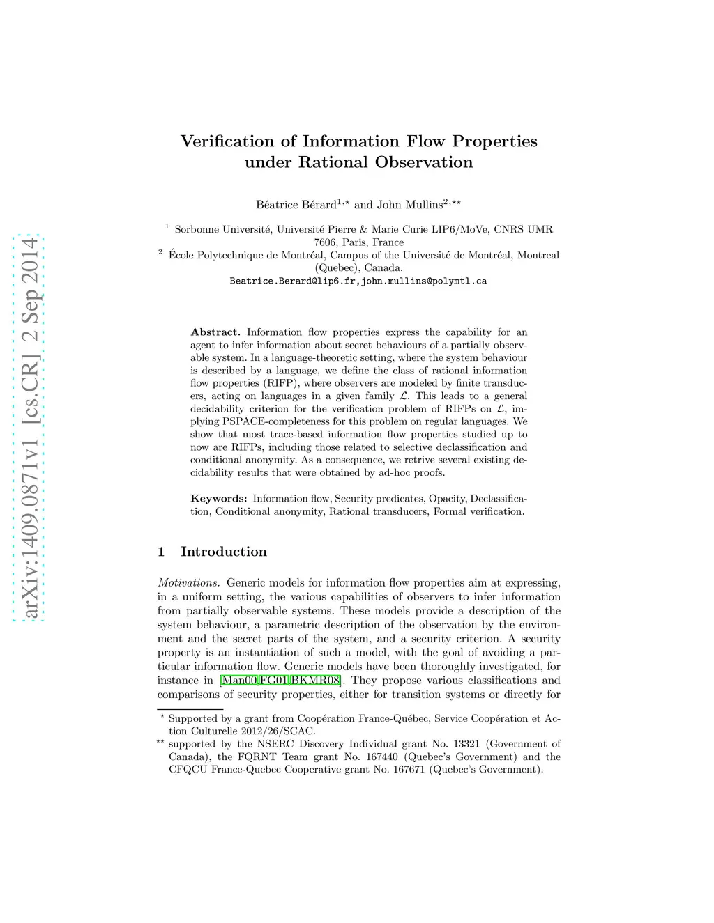 Verification of Information Flow Properties under Rational Observation
