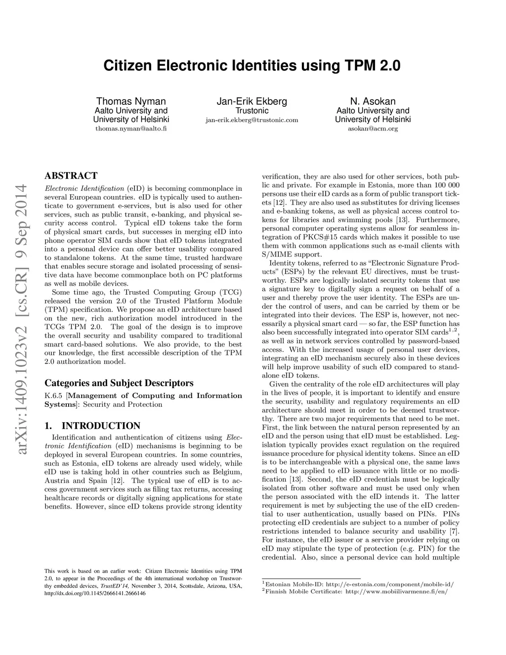 Citizen Electronic Identities using TPM 2.0