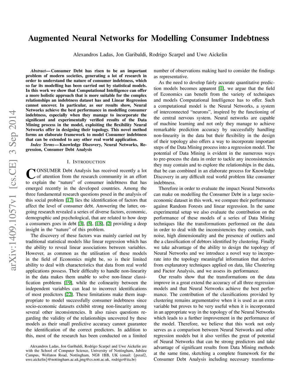 Augmented Neural Networks for Modelling Consumer Indebtness