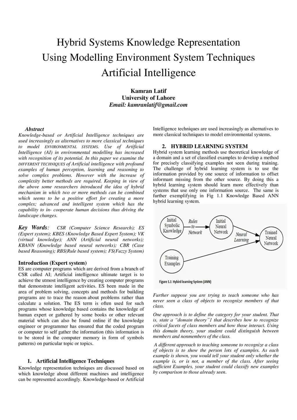 Knowledge-based or Artificial Intelligence techniques are used increasingly as alternatives to more classical techniques to model ENVIRONMENTAL SYSTEMS. Use of Artificial Intelligence (AI) in environmental modelling has increased with recognition of its potential. In this paper we examine the DIFFERENT TECHNIQUES of Artificial intelligence with profound examples of human perception, learning and reasoning to solve complex problems. However with the increase of complexity better methods are required. Keeping in view of the above some researchers introduced the idea of hybrid mechanism in which two or more methods can be combined which seems to be a positive effort for creating a more complex; advanced and intelligent system which has the capability to in- cooperate human decisions thus driving the landscape changes.
