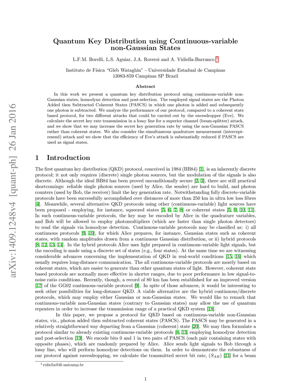 In this work we present a quantum key distribution protocol using continuous-variable non-Gaussian states, homodyne detection and post-selection. The employed signal states are the Photon Added then Subtracted Coherent States (PASCS) in which one photon is added and subsequently one photon is subtracted. We analyze the performance of our protocol, compared to a coherent state based protocol, for two different attacks that could be carried out by the eavesdropper (Eve). We calculate the secret key rate transmission in a lossy line for a superior channel (beam-splitter) attack, and we show that we may increase the secret key generation rate by using the non-Gaussian PASCS rather than coherent states. We also consider the simultaneous quadrature measurement (intercept-resend) attack and we show that the efficiency of Eve's attack is substantially reduced if PASCS are used as signal states.