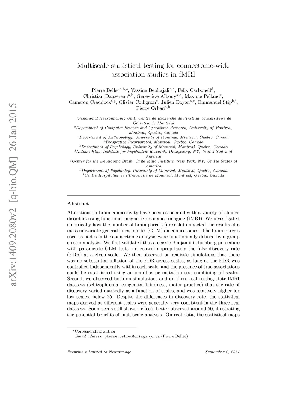 Alterations in brain connectivity have been associated with a variety of clinical disorders using functional magnetic resonance imaging (fMRI). We investigated empirically how the number of brain parcels (or scale) impacted the results of a mass univariate general linear model (GLM) on connectomes. The brain parcels used as nodes in the connectome analysis were functionnally defined by a group cluster analysis. We first validated that a classic Benjamini-Hochberg procedure with parametric GLM tests did control appropriately the false-discovery rate (FDR) at a given scale. We then observed on realistic simulations that there was no substantial inflation of the FDR across scales, as long as the FDR was controlled independently within each scale, and the presence of true associations could be established using an omnibus permutation test combining all scales. Second, we observed both on simulations and on three real resting-state fMRI datasets (schizophrenia, congenital blindness, motor practice) that the rate of discovery varied markedly as a function of scales, and was relatively higher for low scales, below 25. Despite the differences in discovery rate, the statistical maps derived at different scales were generally very consistent in the three real datasets. Some seeds still showed effects better observed around 50, illustrating the potential benefits of multiscale analysis. On real data, the statistical maps agreed well with the existing literature. Overall, our results support that the multiscale GLM connectome analysis with FDR is statistically valid and can capture biologically meaningful effects in a variety of experimental conditions.